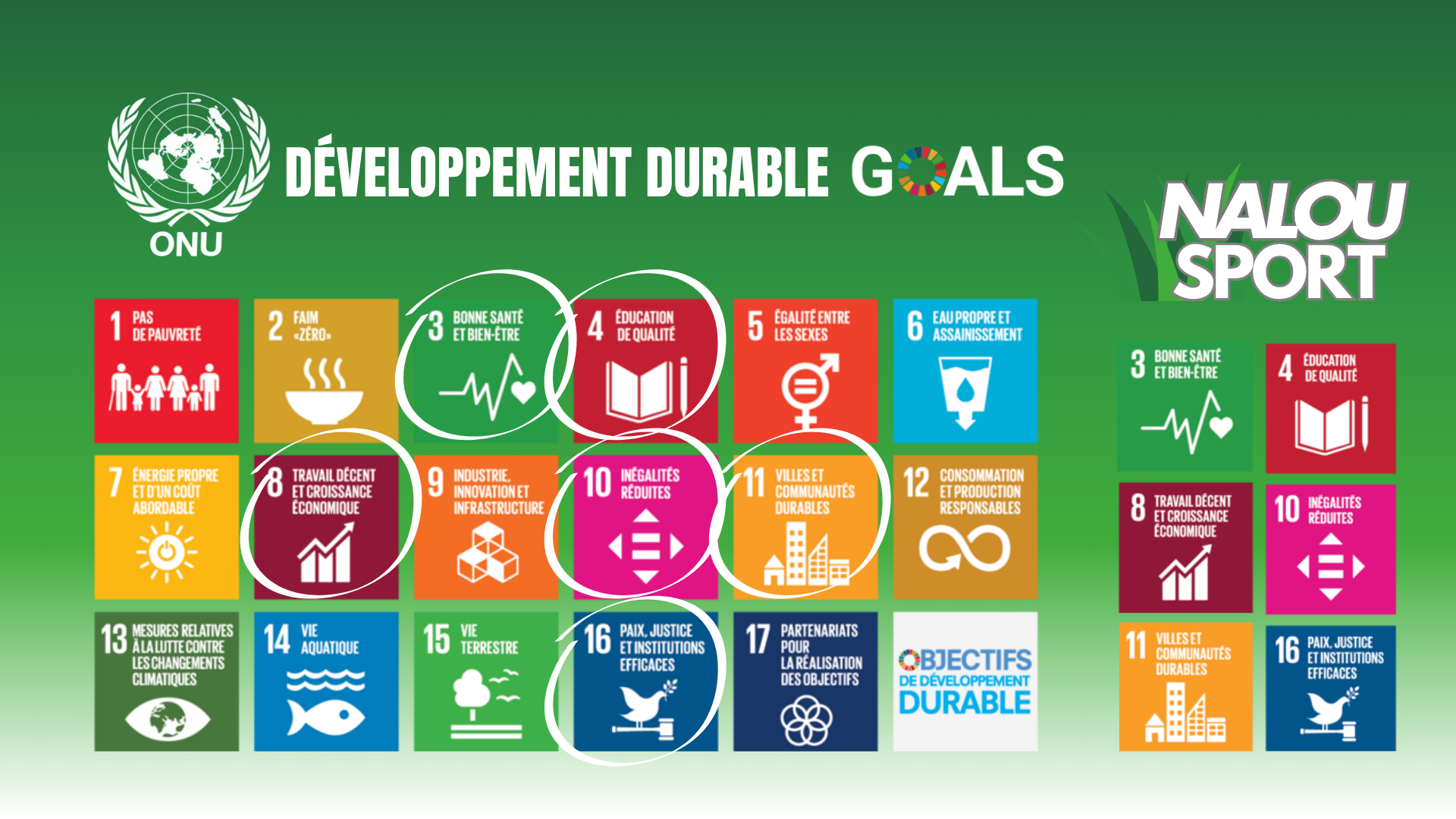 Nalou Sport aligne sa mission sur les Objectifs de développement durable (ODD) des Nations Unies, transformant les projets d’infrastructure en vecteurs de changement positif. Notre approche contribue directement à :